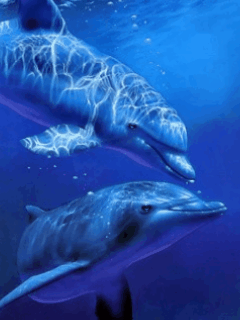 Two blue dolphins